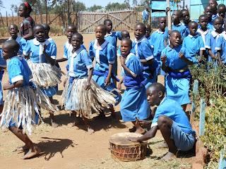 The Kisima children enjoy their leisure time. In these photos the girls are practicing singing and dancing and the boys are relaxing after a game of soccer. They would like to form a team and play other schools.